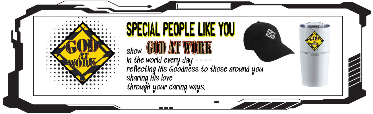 GODatWORK is the store for special people like you who show GOD at WORK in the world everyday -- reflecting His Goodness to those around you. Sharing His love through your caring ways. We hope you'll use our gear to remind others what a wonderful creation they are and help us all feel the loving touch of God in their lives.